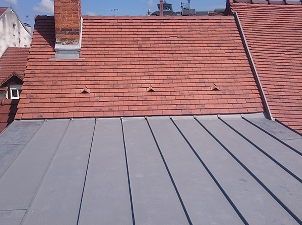 Nous réalisons également tous types de travaux de zinguerie. Nos travaux sont réalisés suivant la méthode traditionnelle et en respectant les DTU, aucune pièce de zinc n’est percée, tout est agrafé et soudé.